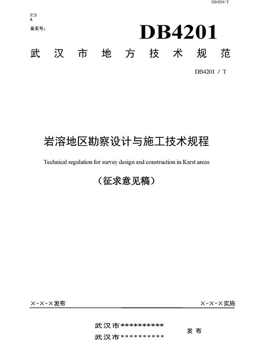 根據《市質監(jiān)局關于下達2018年度武漢市地方標準制修訂項目計劃的通知綜合管理類(第二批)》(武質技監(jiān)標[2018]5號)的要求,由武漢市勘察設計有限公司聯(lián)合相關單位共同起草的武漢市地方標準《巖溶區(qū)勘察設計與施工技術規(guī)程》(附件1)已完成征求意見稿。按照有關規(guī)定,現(xiàn)征求貴單位意見。請將意見填入對應《征求意見反饋表》(附件2)并加蓋單位公章后,紙質版(或掃描件)于2019年07月20日前反饋給武漢市勘察設計有限公司,逾期不復函,視為無意見。