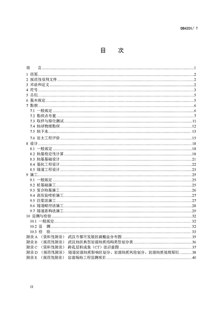 本規(guī)程規(guī)定了武漢市巖溶地區(qū)勘察、地基基礎設計與施工、監(jiān)測與檢驗的基本技術要求。 本規(guī)程適用于武漢市巖溶地區(qū)建(構)筑物、市政橋梁工程和城市軌道交通工程的勘察、地基基礎