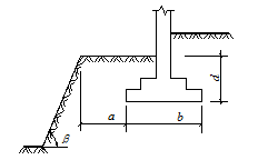 a ——基礎底面外邊緣線至坡頂?shù)乃骄嚯x(m); b——垂直于坡頂邊緣線的基礎底面邊長(m); d——基礎埋置深度(m);