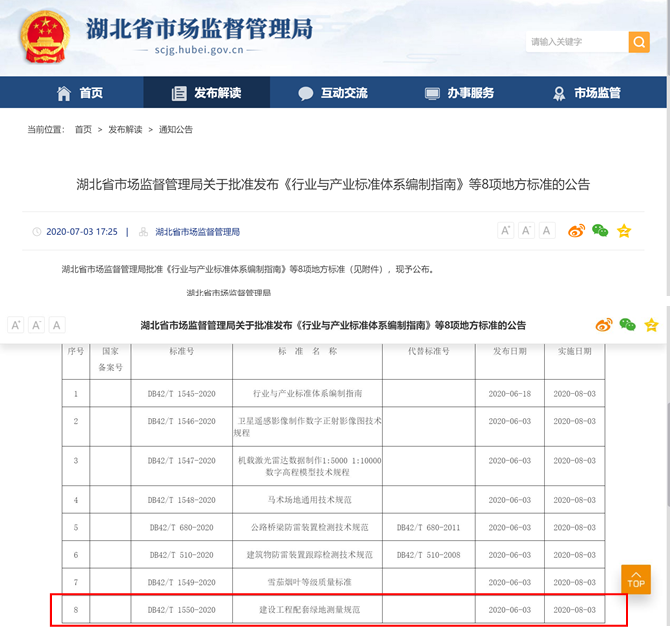 公司主編的《建設(shè)工程配套綠地測量規(guī)范》獲湖北省市場監(jiān)督管理局批準(zhǔn)發(fā)布