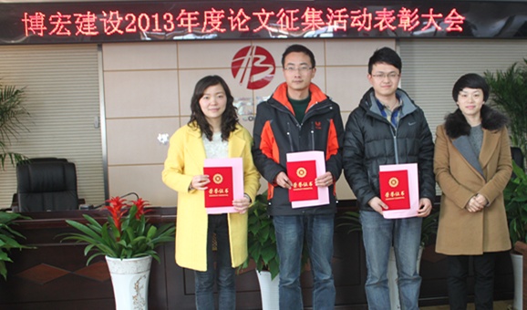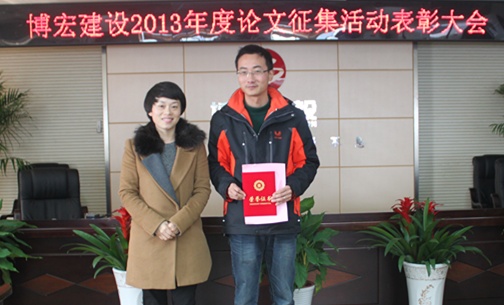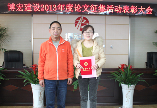 2014年3月5日下午在武漢博宏建設(shè)有限公司會議室舉行了2013年度博宏建設(shè)論文征集活動表彰大會,財務室鄒璇同志的論文《試論博宏公司如何分攤企業(yè)管理費用的方法探討》榮獲一等獎。